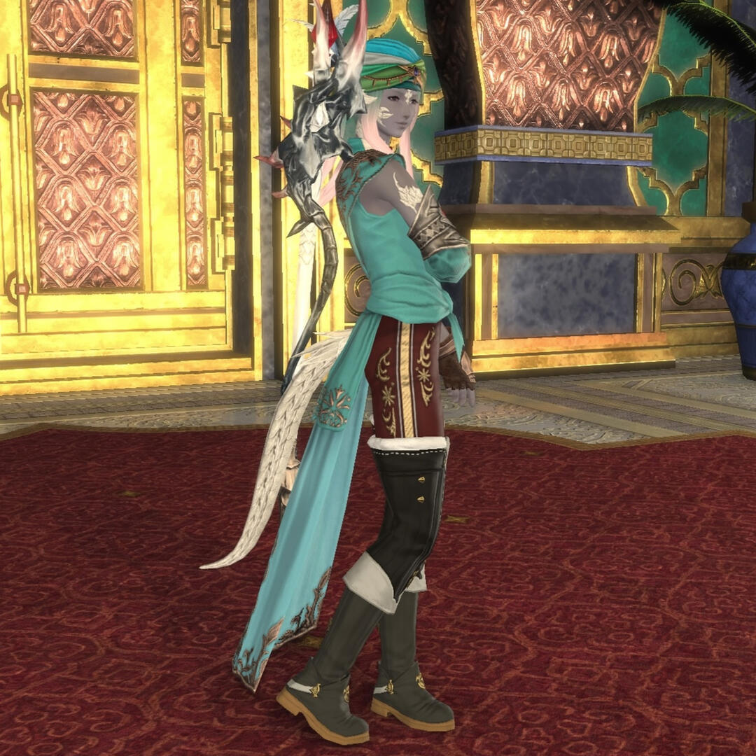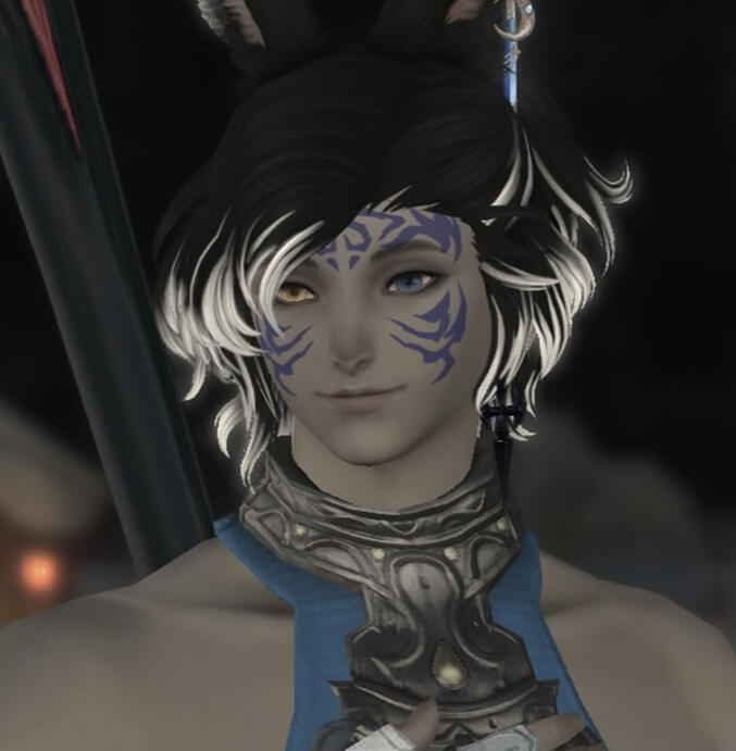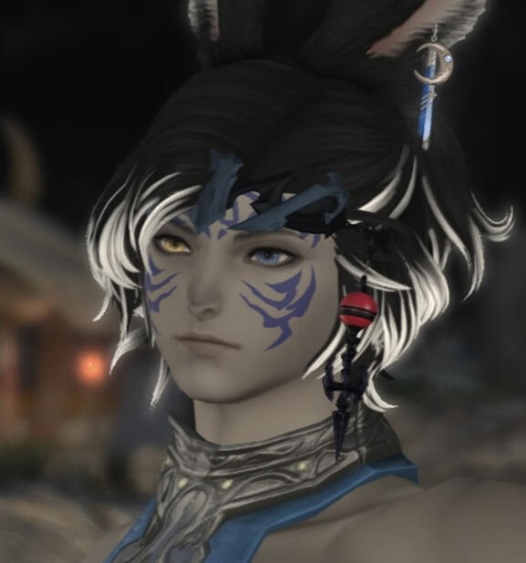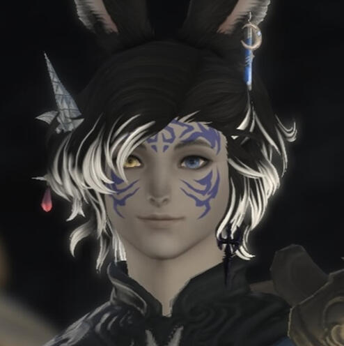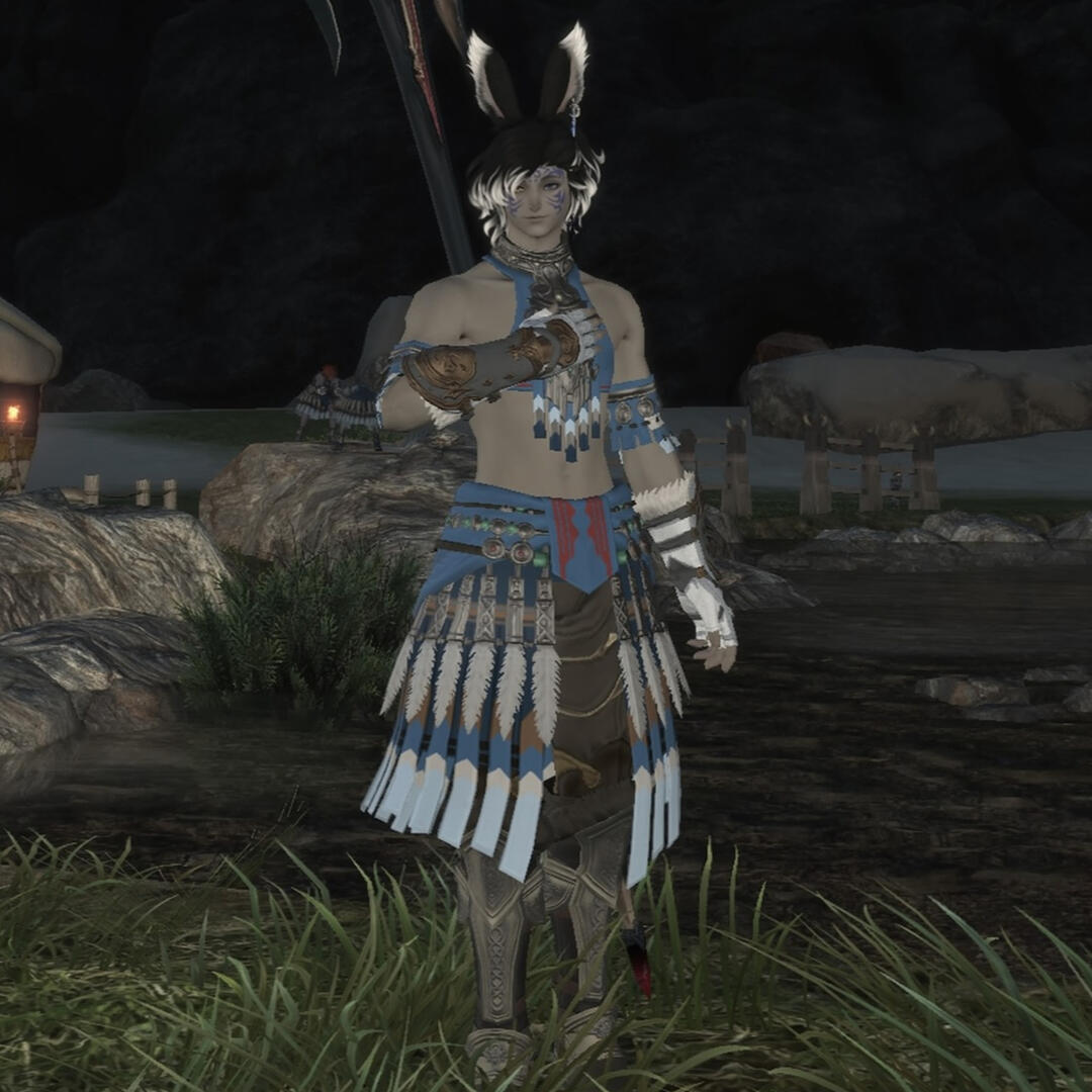 Found in a wrecked trader's caravan on the Azim Steppe as a baby. The Dotharli hunters who found him first took him to Reunion to see if any survivors of whatever happened to the caravan had reached there, but returned to Dotharl Khaa upon finding no evidence of where the lost viera baby belonged. He was presented to the then-Khatun for examination, and recognized as a Dotharli who had slightly missed the mark on their way back to the tribe, and so, the gods had endeavored to put him in the right place at the right time. Named Altansarnai (Sarnai for short) he was raised like every other warrior of the tribe, if not with some physical differences thanks to his different build. Sarnai was, and is, a quick learner who picks up combat styles easily, and can repeat any action he's seen.After he came of age, he asked for permission to leave the tribe to travel the world in hopes of finding more information about his birth relatives to respect their memory, as well as to learn more about foreign combat to bring back in hopes of helping the Dotharli thrive in the future. He's found a lot of different combat styles, but not his birth parents yet. Though truthfully, it would be fine if he never knows the truth, as long as he has something to bring home that will help his clan thrive.Gender/Pronouns: nonbinary male, indifferent to defining his own identity or pronouns, generally he/him/his